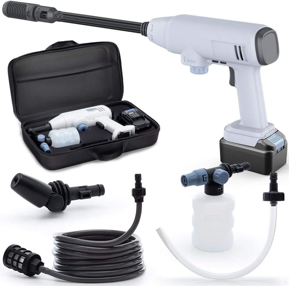 La Bamboosang Hidrolimpiadora de alta presión de 21 V, con una presión máxima de hasta 30 bares y un caudal de agua de 4 l/h. Ofrece un rendimiento excepcional a un precio. Con su potencia, versatilidad y facilidad de uso, esta hidrolimpiadora es una excelente inversión
